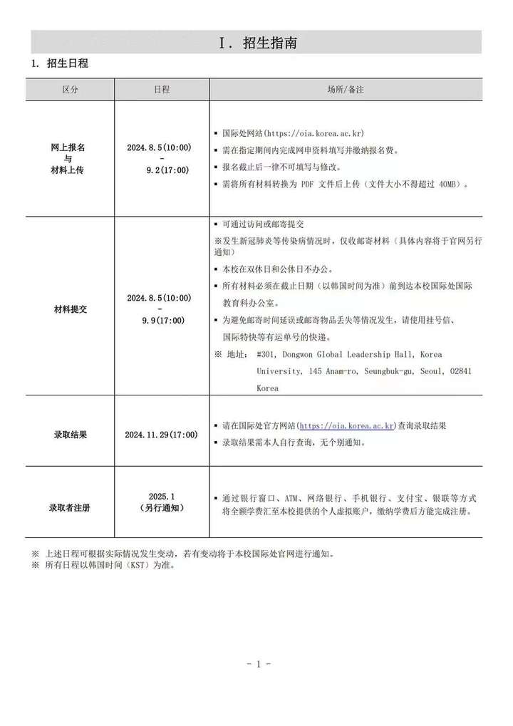 高丽大学(首尔)2025年3月本科招生简章