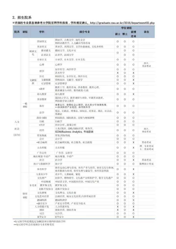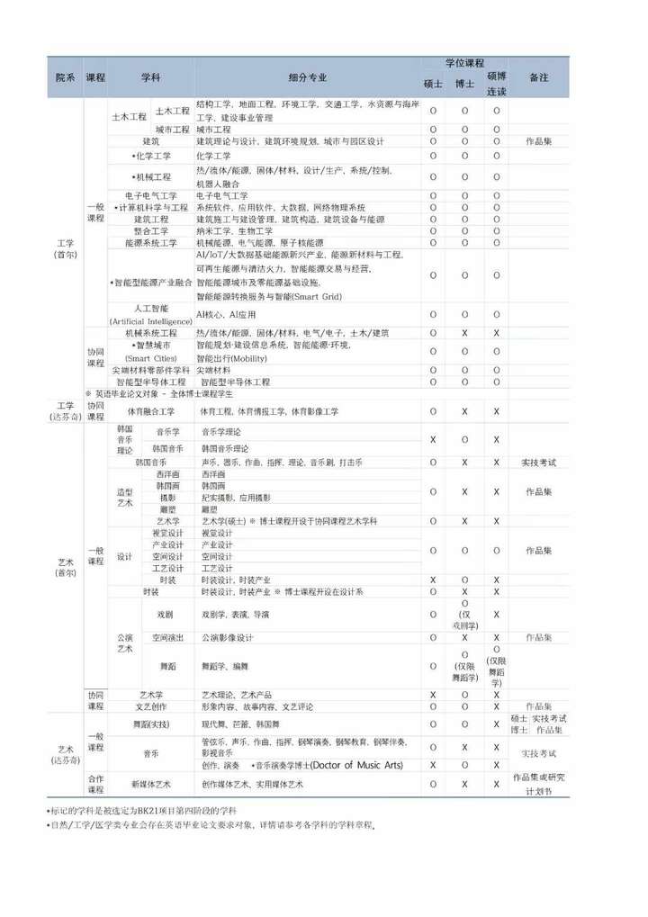 韩国院校专业