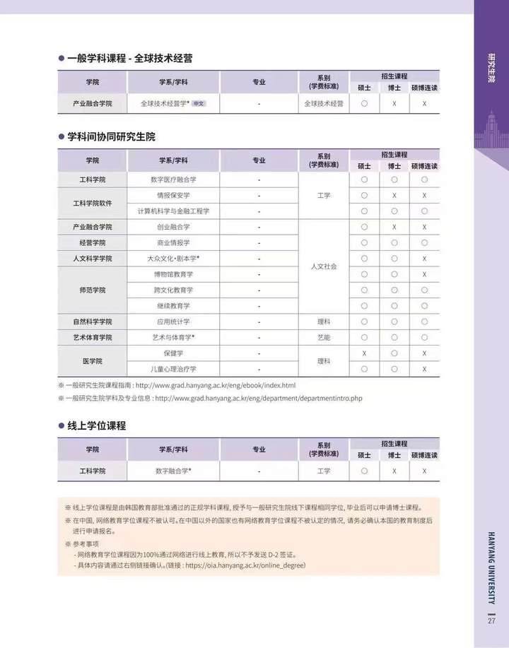 汉阳大学(首尔)2025年3月硕博招生简章