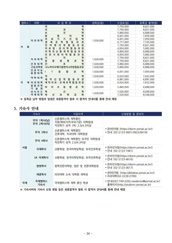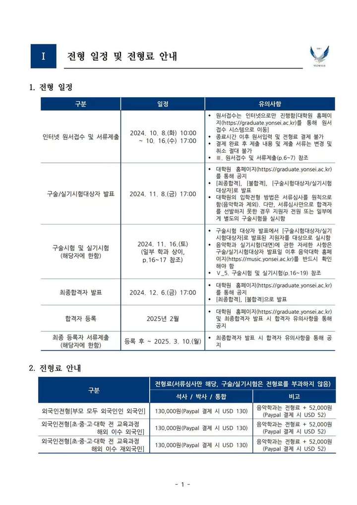 延世大学(首尔校区)2025年3月硕博招生简章