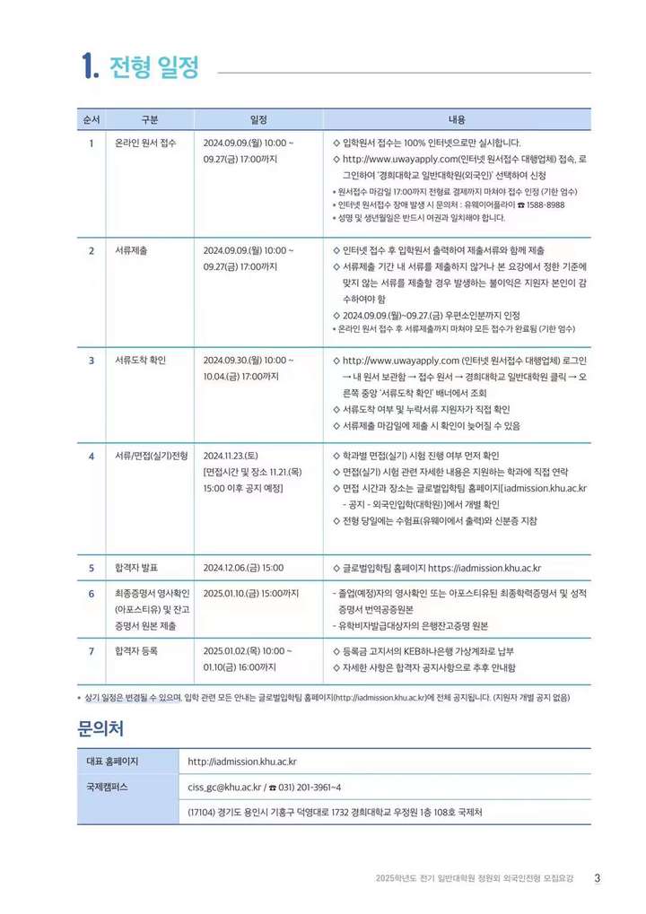 庆熙大学2025年3月硕博招生简章